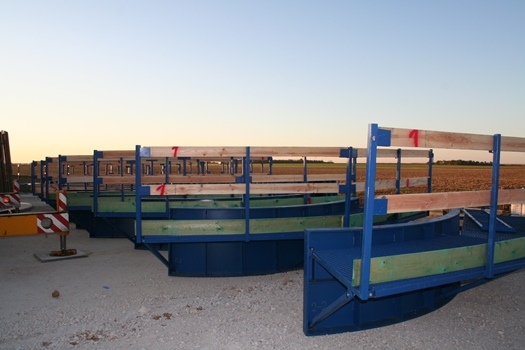 Pourtant, une telle construction nécessite une autre approche pour la construction et la pose de l’armature. Pour ce chantier, des gabarits spéciaux ont été construits afin de permettre la pose des aciers en sécurité.